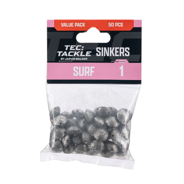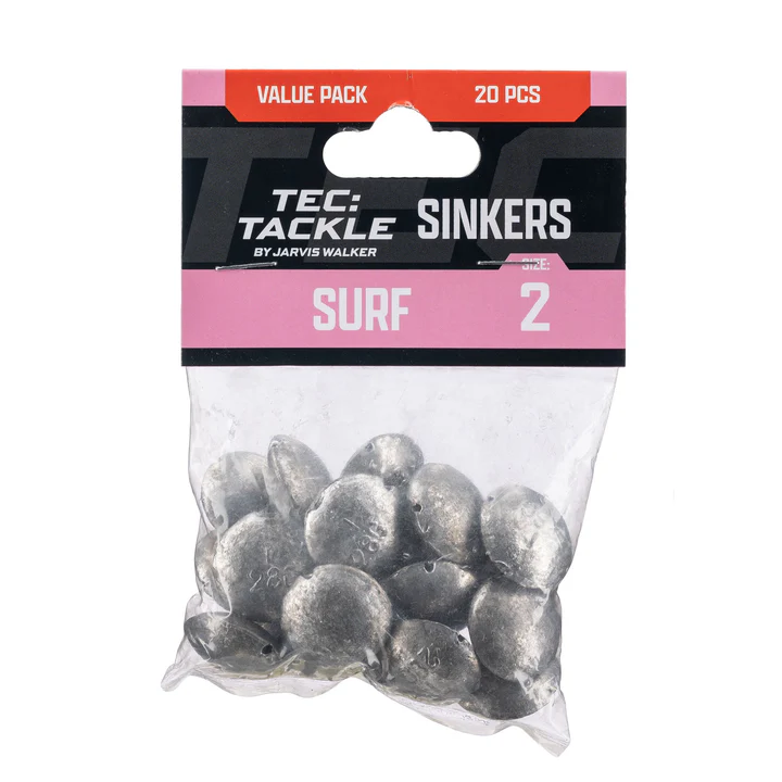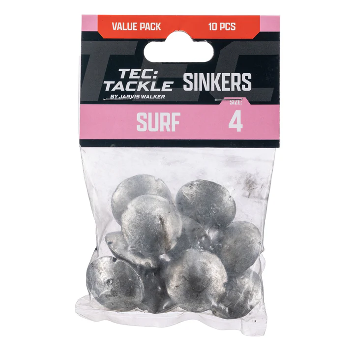 Surf sinkers are popular with beach anglers using running sinker rigs. The squat convex disc shape is excellent for casting distance, while offering good resistance to rolling in strong surges or wash. They’re ideal when you need extra holding power to keep your bait in the best position for longer.