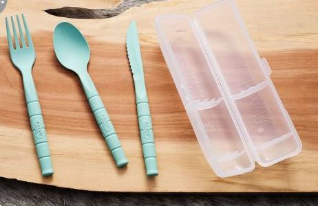 Don’t eat lunch alone – eat with your Pal! The USA-made Lunch Pal comes with a full-size fork, knife, spoon, and storage case. Throw the Lunch Pal in your pack or glovebox without worrying about it getting dirty thanks to the convenient storage case. The storage case is clearly marked with a spot for each utensil – no one wants to fight to fit items back in a case. Dishwasher safe. Please wash before first use. The Lunch Pal is made in the USA with food and water-safe Creamid.