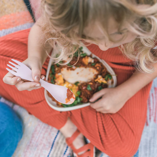 The small sized spoon-fork combo for little people on the go.