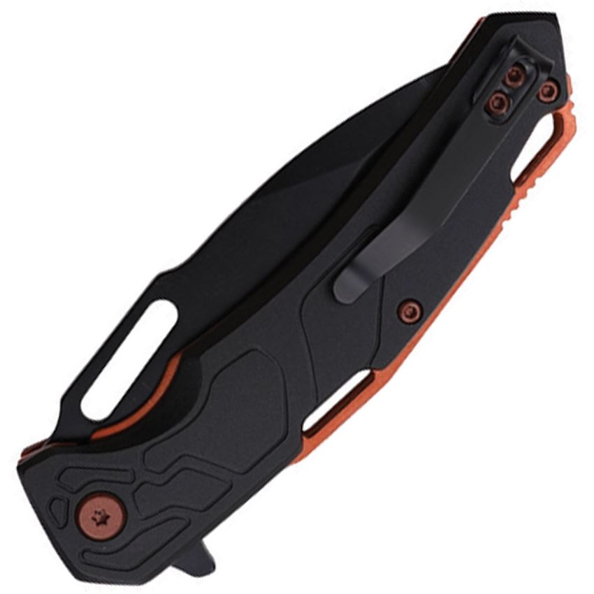 MTech Knives – Assist Open Black Drop Point Linerlock Knife Black Aluminum Handles. Assisted opening. 4.5″ (11.43cm) closed. 3.5″ (8.89cm) black oxide coated 3Cr13MoV stainless drop point blade. Black anodized aluminum handle. Extended tang. Thumb pull. Lanyard hole. Pocket clip. Orange accents. Boxed. Made in China.