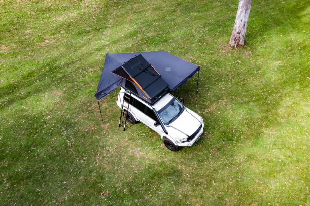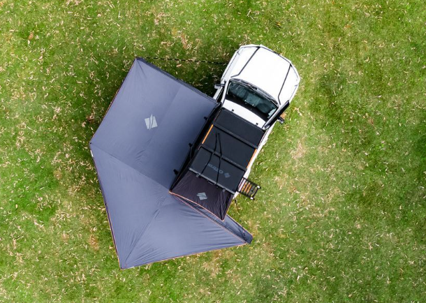 The BlockOut 270 2m Awning provides a generous 14 sqm of shade. Built with durable 280gsm Ripstop polycotton canvas and BlockOut technology, it reduces heat by 10°C and blocks 95% of sunlight for optimal protection during outdoor adventures.