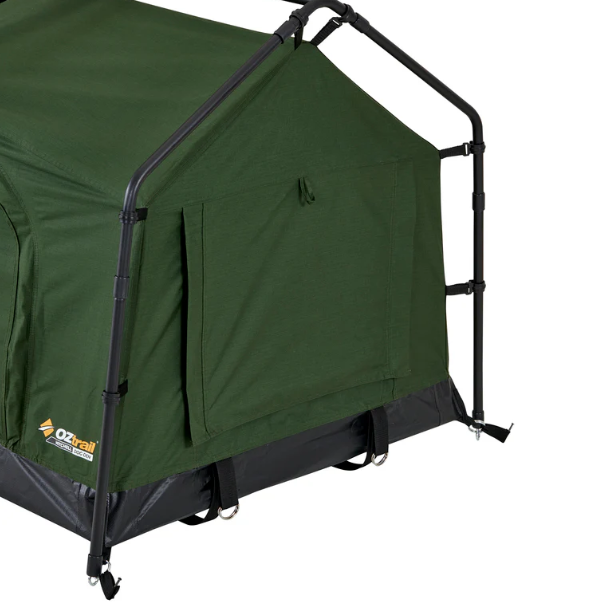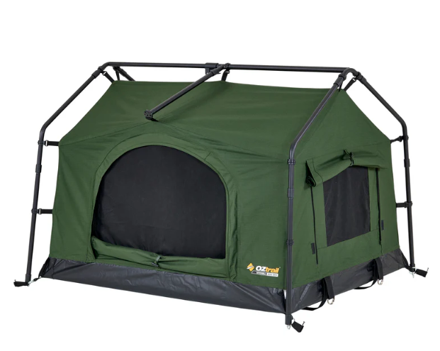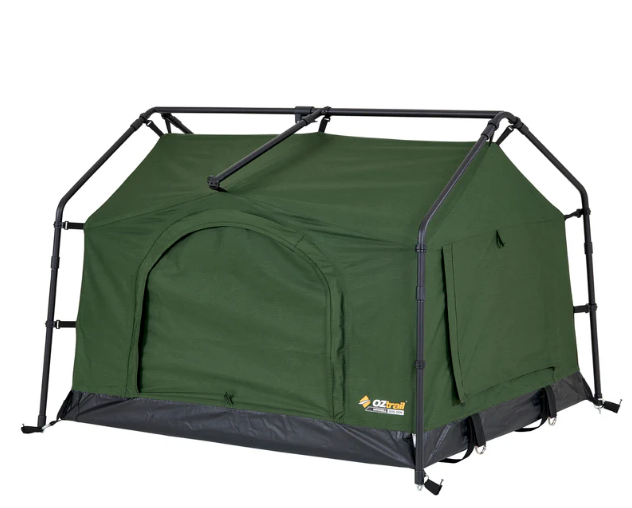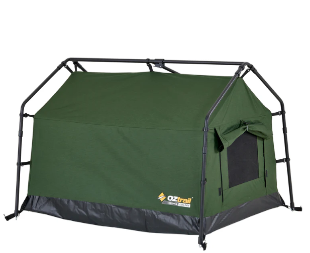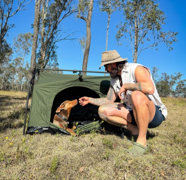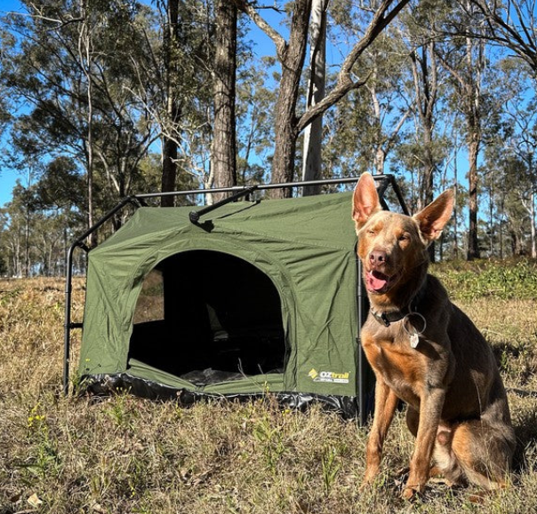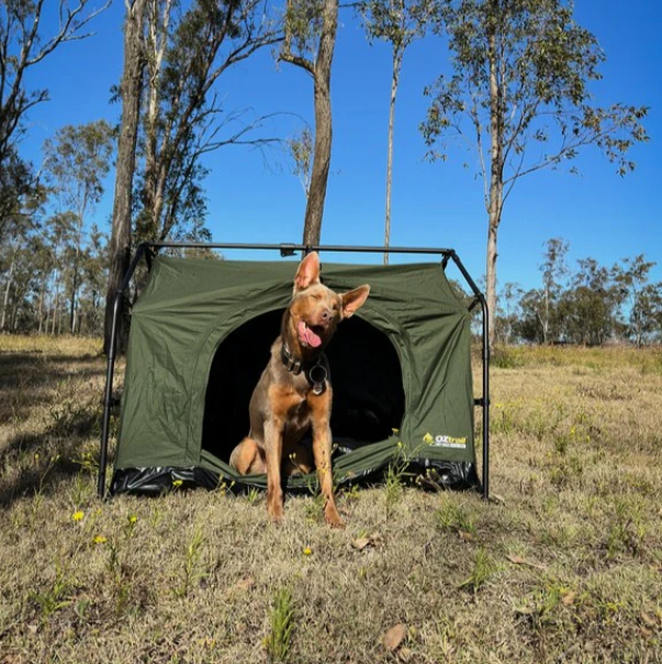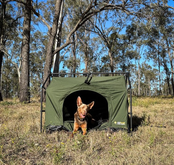 Introducing the Mitchell Dog Den Swag, the ultimate portable camping dog kennel for your best four footed mate. Designed for the outdoors, this swag features a freestanding design that sets up in minutes, just drop your dog’s bed in and you’re done! It’s crafted from heavy-duty, seam-sealed 200GSM ripstop polycotton canvas and built with a durable 19mm powder-coated steel pole frame system, offering protection and reliability in tough weather. An extra-wide front opening provides easy access for larger dogs, while two side windows deliver excellent cross-flow ventilation. When it’s time to hit the road, the swag packs down into an oversized, easy-to-stuff carry bag, making transport and storage a breeze. Whether you’re camping, road-tripping, or exploring the great outdoors, the Mitchell Dog Den Swag is your pet’s home away from home.