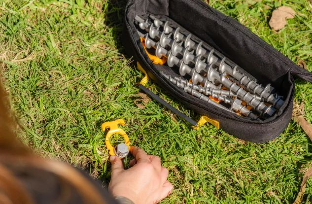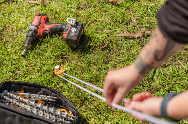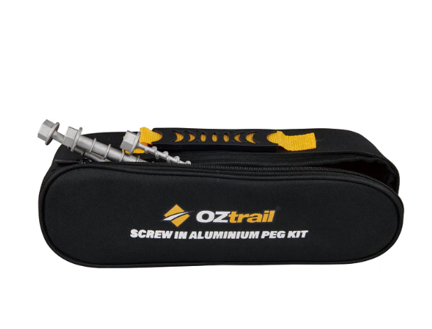 The Oztrail Aluminium Peg Kit offers a complete solution for securing your tent or shelter, featuring a variety of peg sizes to suit different ground conditions. It includes 4 large pegs (30cm), 4 medium pegs (20cm), 4 small pegs (12cm), large and medium clips, a drill adaptor for quick setup, and a durable carry bag to keep everything organized and ready for your next adventure.