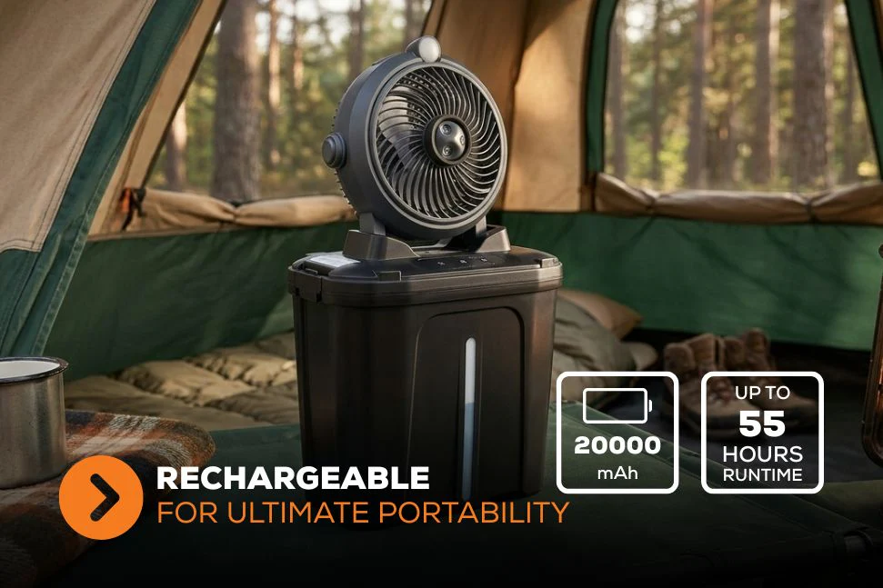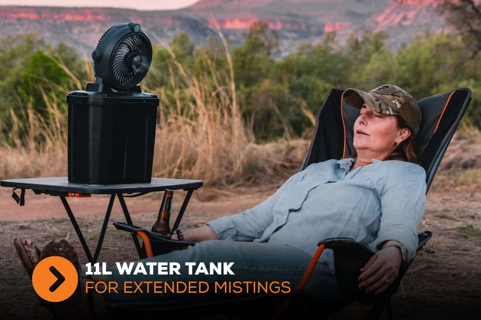 Large 11L capacity provides long-lasting mist for continuous cooling, keeping you comfortable for extended periods.