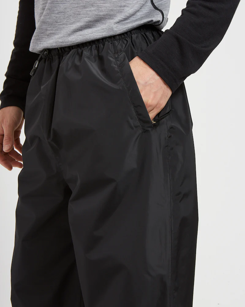 Expertly designed with 100% recycled polyester ripstop and a PFAS-free DWR finish, the Stash Rain Pant ensures both sustainability and functionality. Additional features include zip side pockets, waist drawcord, and lower leg zips.