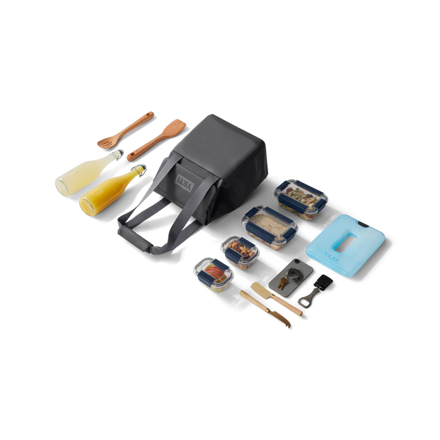 The 14L Tote Bag is most compatible with our Large YETI® Thin Ice & Large Food Storage, but any size of each can fit. The Sidekick Dry® 1L and 3L Gear Cases also can attach and same with our bottle opener accessory.